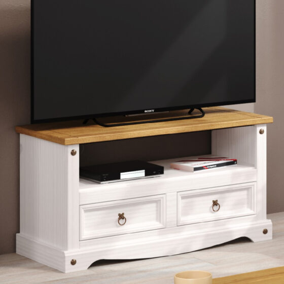 Consett Wooden TV Stand With 2 Drawers In White And Oak