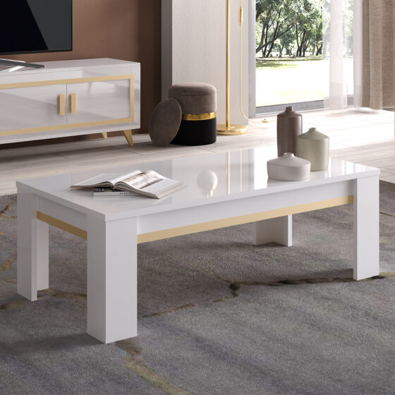 Geneva High Gloss Coffee Table In White And Gold
