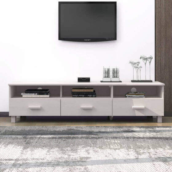 Introducing the Furniture in Fashion Hull Wooden TV Stand, a stylish and functional addition to your living space. Crafted from high-quality wood with a rich White finish, this TV stand features a spacious top for your television and three drawers for ample storage of media accessories and other essentials. Its contemporary design effortlessly complements various interior styles, adding a touch of elegance to your entertainment area. Durable and chic, the Hull Wooden TV Stand by Furniture in Fashion combines practicality with sophisticated design, perfect for enhancing your home’s dcor and keeping your space organized. FEATURES : Material : Solid Pinewood, MDF Finish : White This wooden TV cabinet makes a decorative and practical addition to your decor The TV stand is made of solid pinewood, making it stable and sturdy The TV unit has 3 smooth sliding drawers and 3 compartments, providing ample storage space for keeping your multimedia appliances, books and other items well organised and within easy reach The sturdy table top is perfect for displaying decorative objects, photo frames, and potted plants Thanks to the slot at the back, you can hide the power cords behind the cabinet to keep them out of sight This TV cabinet fits well in a modern interior This TV stand has cable holes in the back Protect from scratches and stains with regular material care Available at an affordable price Images shown are for illustration purpose only DIMENSIONS : Height : 40cm Width : 158cm Depth : 40cm