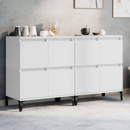 Introducing the Peyton Wooden Sideboard with 8 Doors in White, proudly presented by Furniture in Fashion. Elevate your living space with this exquisite and spacious sideboard, designed to enhance both your storage and your dcor. Crafted from rich White, this sideboard boasts a classic aesthetic that seamlessly blends with various interior styles. With its 8 doors, it offers ample storage options for your dining essentials, tableware, and more. The Peyton Wooden Sideboard not only adds functional storage to your home but also serves as a stunning statement piece. Discover the perfect balance of style and utility with Furniture in Fashion. FEATURES : Material : Engineered Wood, Metal Finish : White Delivery Sontains : 2 x Sideboards These classic sideboards, featuring a timeless look, are meant to be an excellent addition to your home The engineered wood is of exceptional quality with smooth surface and also features strength, stability and resistance to moisture Made of engineered wood, the cabinet is easy to clean with a damp cloth Equipped with 4 compartments, the sideboard cabinet offers ample storage space for keeping your various daily essentials well organised and within easy reach The top of the cupboard is great for displaying your decorative items, photo albums or small plants To prevent it being overturned, this product must be used with the provided wall attachment device Available at an affordable price Images shown are for illustration purpose only DIMENSIONS : Height : 70cm Width : 60cm Depth : 35cm