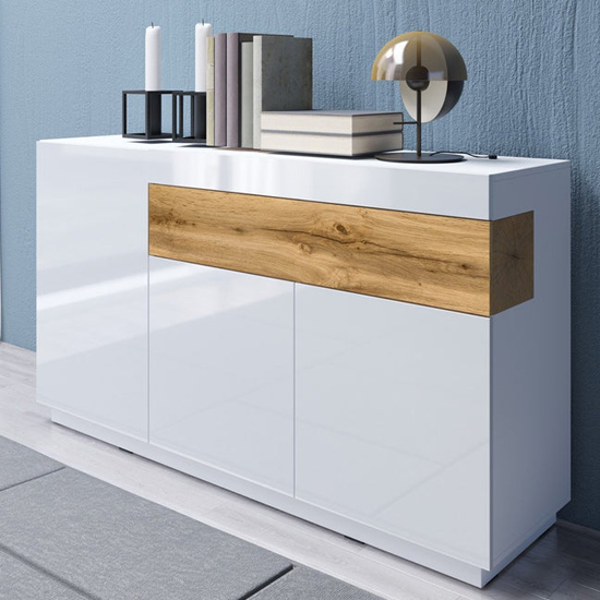 Sioux High Gloss Sideboard 3 Doors 1 Drawer In White And Oak