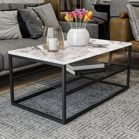 Solvani Wooden Coffee Table With Black Metal Frame In White