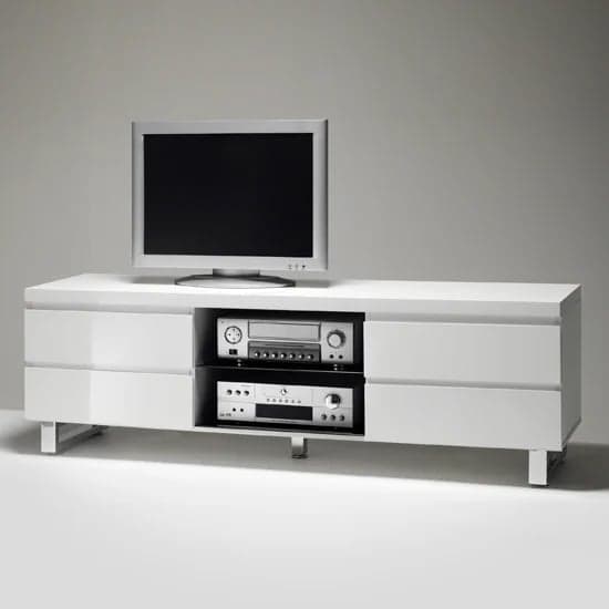 Sydney High Gloss TV Stand In White With 4 Drawers